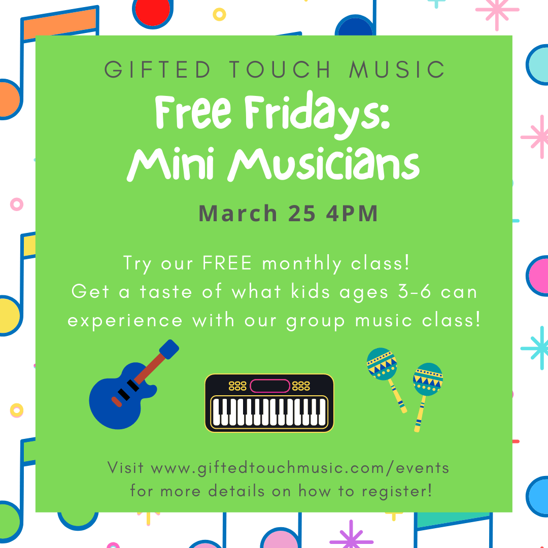 We are more than just a music school. We are your creative home! Explore the arts with us. Be empowered to make magic through every note you sing, every lyric you write, every instrument you touch! Here is just a taste of what you or your child can expect to experience at Gifted Touch Music: